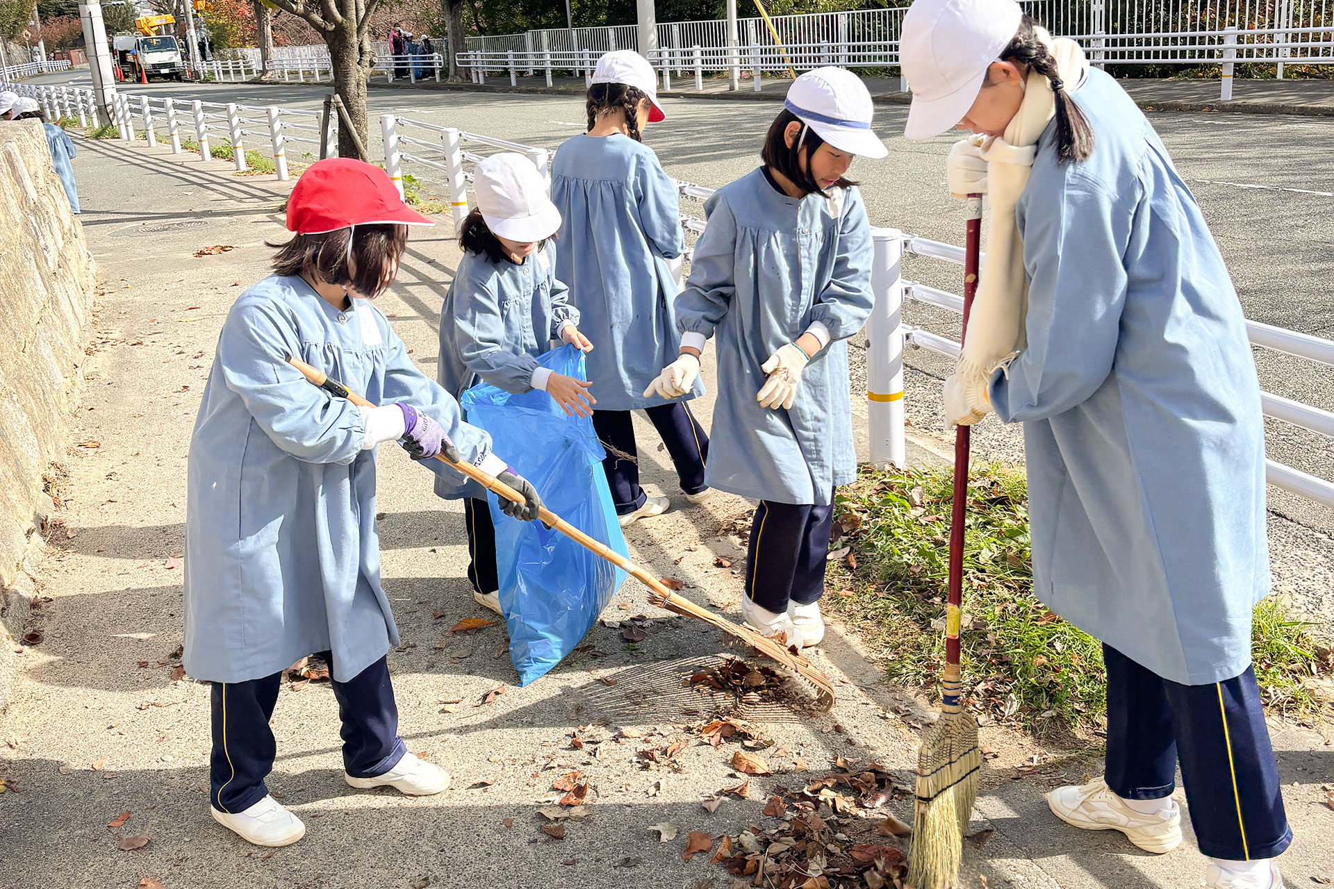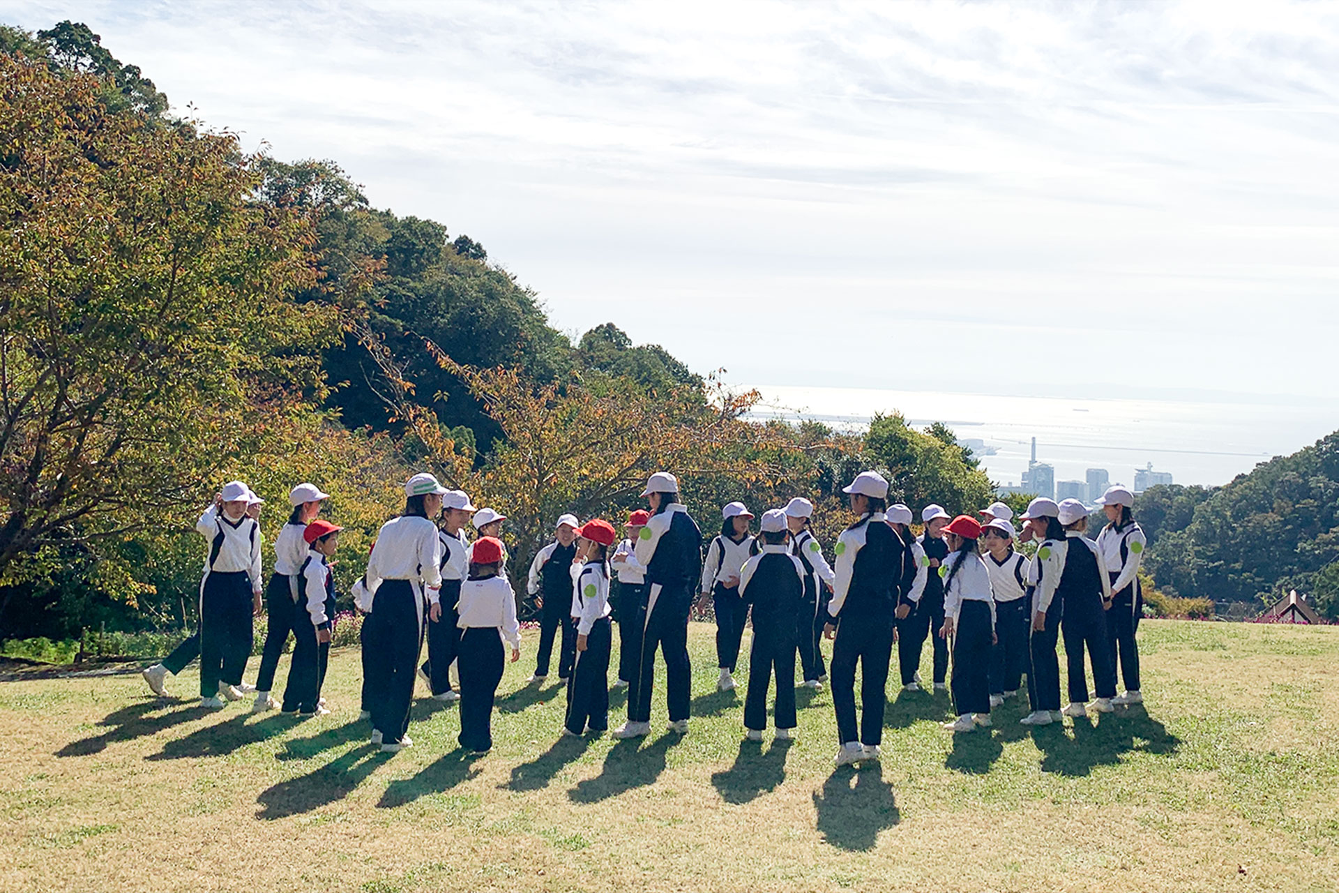 1年生から6年生までの児童で縦割り班を作り、ボランティア活動や自然体験、制作活動などに取り組んでいます。異学年で助け合いながら活動することで、学年を超えた交流が生まれ、友達の輪が広がります。