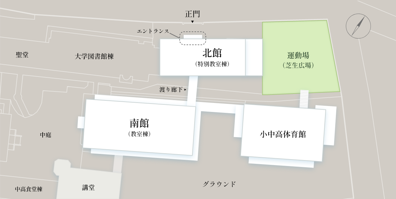 小学校北館(特別教室棟)は、2024年3月に竣工、小学校南館(教室棟)は、2024年8月に竣工、小学校校門が完成し、玄関が北館になりました。