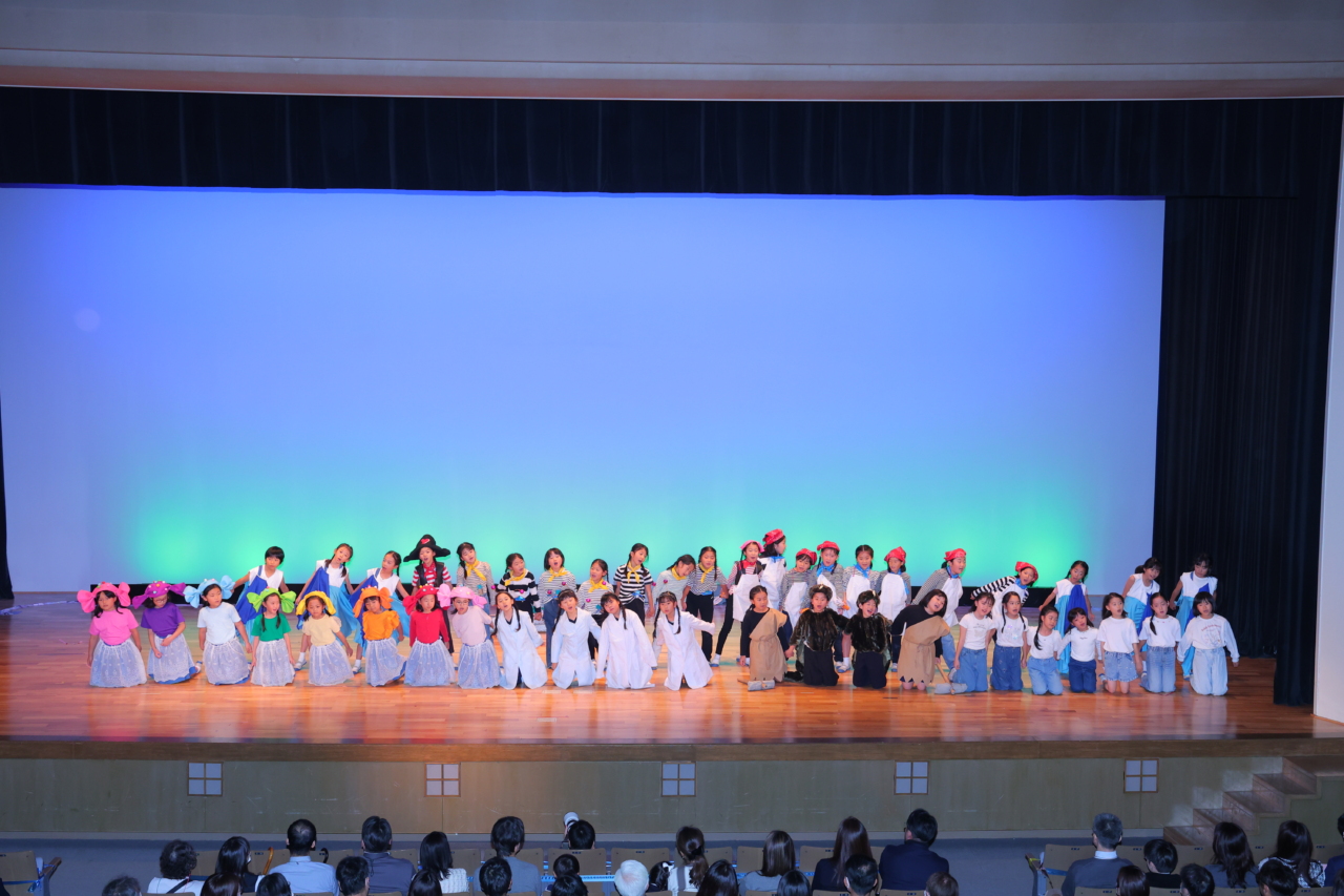 11月9日(日)、テーマ「光る個性で未来をてらそう 輝け海の星」のもと、学芸会が行われました。劇や合奏、和太鼓演奏、合唱を保護者の皆様、入学希望の皆様にお見せすることができ、練習の成果を発揮することができて大満足の一日となりました。学年に応じて、感動を届けるために、役になりきり、心を込めて演じることを心掛けました。この学芸会の練習、本番を通してみんなが団結し,子どもたちのつながりが深まったのではないかと思います。保護者の皆様には、雨の中朝早くから並んでいただき、温かい拍手を送ってくださりありがとうございました。