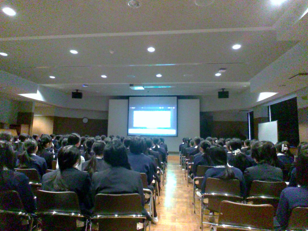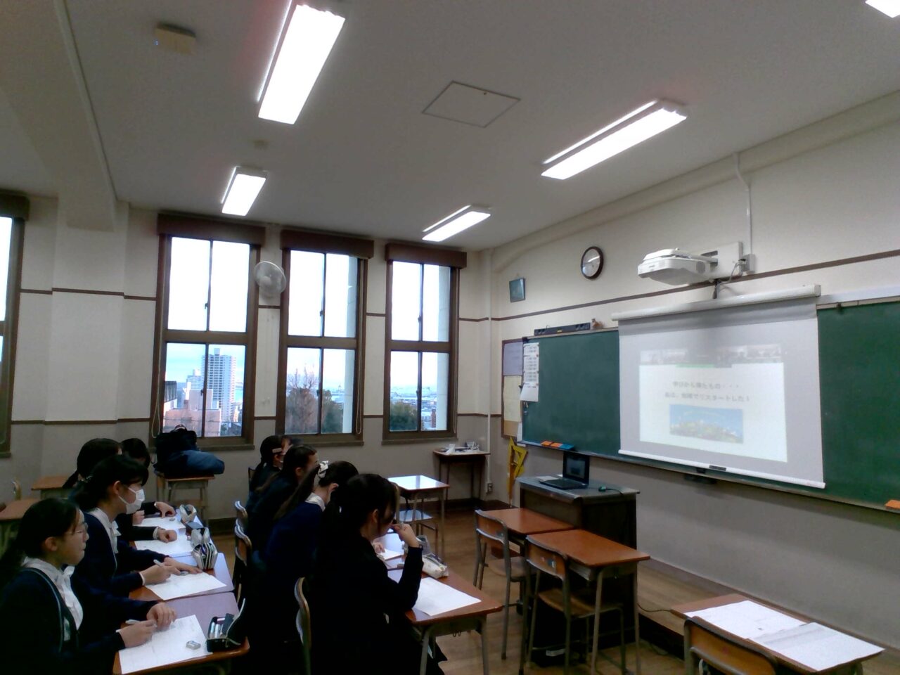 11/13(木)、6限は中高分かれてそれぞれ行事が行われました。 まず、中学は合同でクリスマス会の練習です。 各学年歌い終わった後の拍手も、練習ならではです(本番は厳かな雰囲気の中行われます)。 高1高2は神戸大学から来校された教授陣による、特別出張授業を受けていました。 生徒は希望する学部・興味のあるテーマの授業を選んで受けます。 いつも受けている授業とは違って、大学の雰囲気を感じている様子でした!