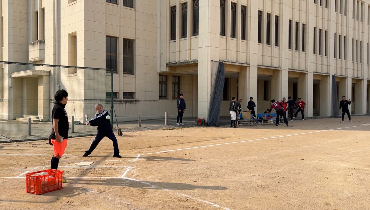 中学球技大会が行われた翌日の11/8(土)、教員も球技大会がありました。 毎年、小中高の先生から何人か募って、ソフトボールチームを組み、他校と試合を行っています。 今年度の初戦はI高校とでした。球場の準備や事前練習は海星のソフトボール部の生徒が手伝ってくれました。 延長戦までもつれこんで、最終的に9−5で海星チームが勝ちました! 次回も勝ちます! 練習や試合を通して、小学校の先生方との交流もできました。 試合の様子や動画は、小学校の方の