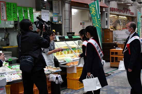 12月13日、中学生の税の作文で優秀な成績を収めた中学3年の生徒2名が、灘税務署で一日税務署長を務めました。灘税務署で名刺などが手渡されたのち、水道筋商店街で確定申告などのPRを行いました。