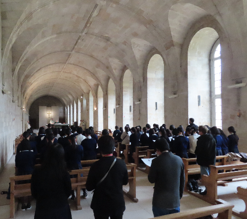 午前中は「フランスの美しい村」に指定されている、ル・ベック・エルワンに行き、ミサに与りました。ミサが始まるまでは、修道院の説明を受け、それぞれ村の散策をしましたが、「美しい村」に指定されているだけあって自然を含めて見るもの全てが美しく、いい時間となりました。