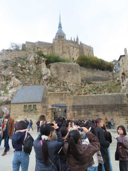 それからグループBと別れて、シャトルバスでモン・サン・ミシェルに向かいました。ガイドさん曰く、お城と思っている日本からの観光客の方も多いようですが、修道院です。