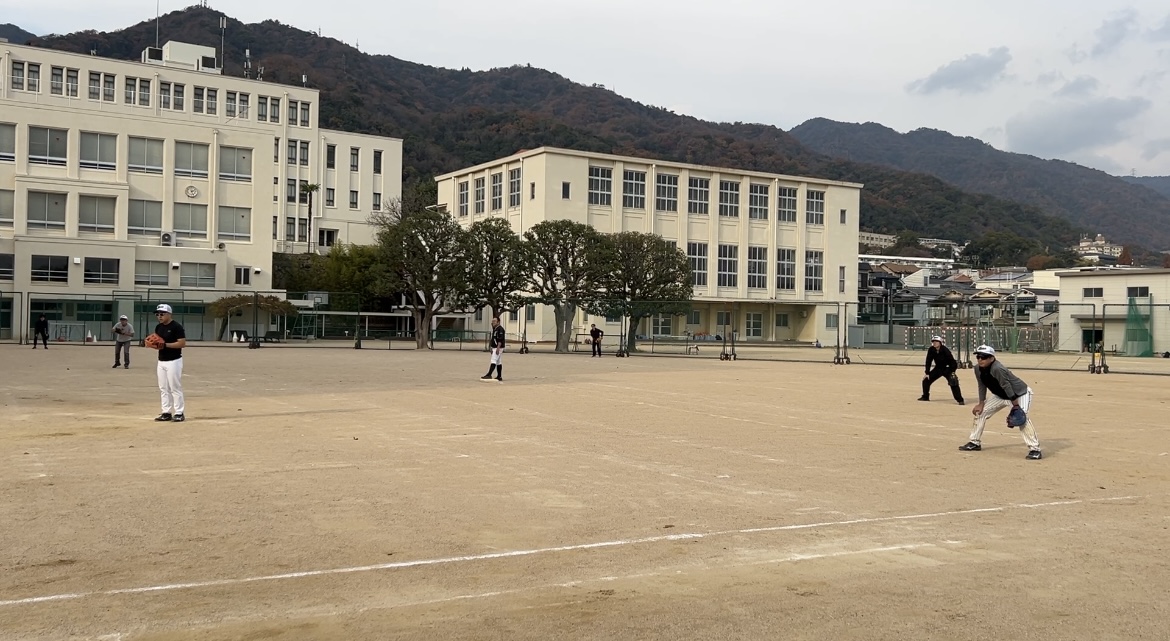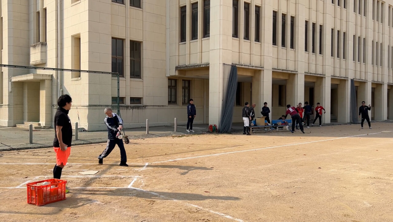 12/8(月)、創立記念日で生徒はお休みでしたが、一部教員はソフトボール大会のために集まっていました。