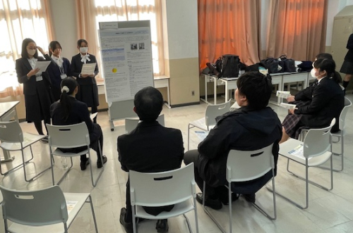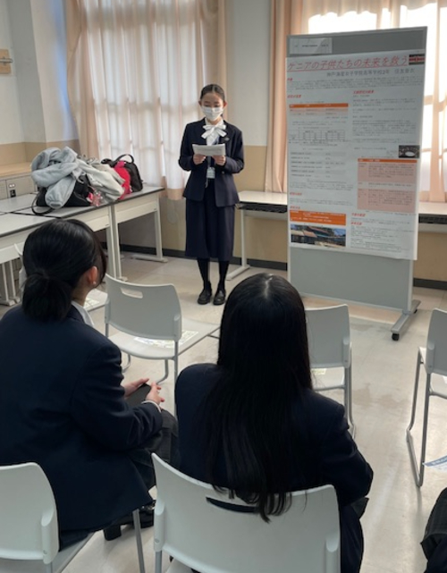 12月13日(土)に実施された関西学院中高生探究の集いに高校2年生4名が参加しました。全国から37校の生徒が参加し、自然科学や社会科学分野など、様々な分野のテーマで発表がありました。本校生は「避難所で活躍できる高校生に」「ケニアのこどもたちの未来を築く」をテーマにポスター発表を行いました。質疑応答も行い、今後の研究にプラスになる気づきがありました。また、先進的に探究に取り組んでいる学校の発表に触れることができ、大きな刺激をもらいました。