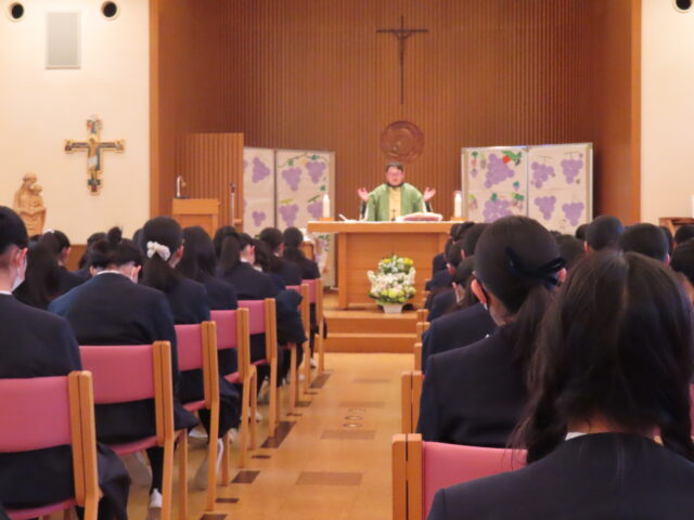1月30日(金)、中学1年生のはじめての静修が行われました。 コンベンツァル・フランシスコ会の大水恵一神父様をお招きして、「つながる〜あなたと わたしと かみさまと〜」をテーマに、お話をしていただきました。 教室に戻ると、神父様のお話を踏まえて、自分たちはどのようになりたいのかという目標を、 ぶどうの実になぞらえて、クラスごとに作成しました。 細かなデザインにも力を入れたようです。 各クラスの作品ととも