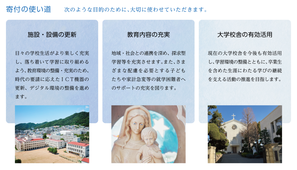 つきましては、本学院としては初めての取り組みとなります「ステラマリス希望の100年募金」を募らせていただくことと