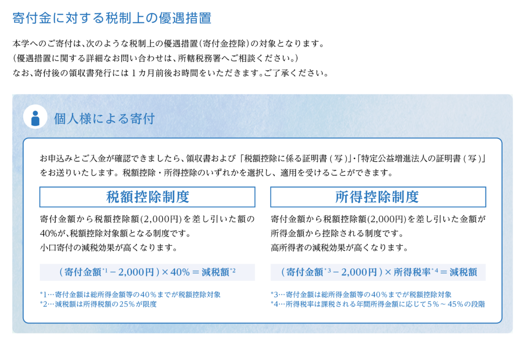 寄付金による教育内容の充実および教育環境の整備を通じて、